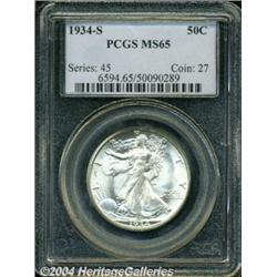 <B>1934-S MS 65 PCGS.</B></I> This beautifully frosted Gem is completely untoned with a lovely silver-white sheen. There are definitely no abrasions that should cause one to doubt the validity of the MS65 designation. Bold-to-sharp striking definition in all areas rounds out this coin's list of positive attributes. Although produced in greater numbers, the 1934-S (3.6 million coins) is scarcer than the 1934-D, particularly as a well struck Gem. <BR><BR><B>Important notice:</B> Heritage usually auctions material at the rate of 200-250 lots per hour. On some occasions eBay Live bid software or the Internet may not be able to keep up with the pace of the auction. We recommend placing a realistic absentee bid now as insurance to avoid disappointment. Occasionally the auctioneer may eliminate or reject an eBay Live bid, and the auctioneer may also reopen a lot after the close of the eBay live bidding (usually because we missed an audience bid), and may reject your bid even if it shows you as the winning bidder. By bidding via eBay Live, you agree that Heritage may award the lot to another bidder at its sole discretion under the circumstances described above or any other reasonable circumstances. Since eBay bids are not shown to us until we open the lot on the floor, we treat those bids just like floor bids. In most cases the floor responds before the eBay bid is presented to us, due to Internet lag time, so for consistency we have made it a policy that floor bids are always considered first over tie eBay live bids. Also please note that all Heritage lots purchased through eBay Live carry a 20% Buyer's Premium. Please make sure you read the Terms and Conditions before you bid. </span></font></tr></table></td></tr></table>