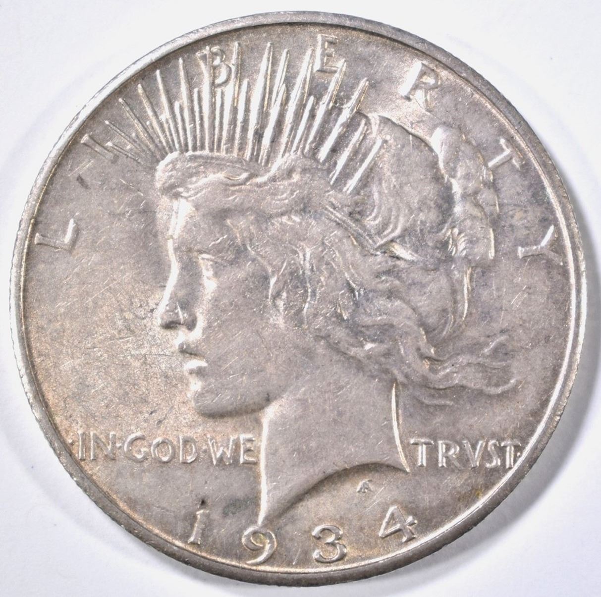 1934-S PEACE DOLLAR CH AU KEY DATE, LIGHT TONE