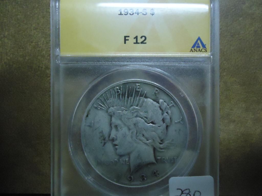 1934-S PEACE SILVER DOLLAR (KEY DATE) ANACS F12