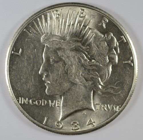 1934-S PEACE SILVER DOLLAR, MS-61 WHITE RARE COIN
