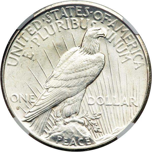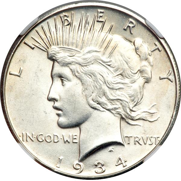 1934-S Peace Dollar. Improperly Cleaned. A nice frosty coin with a hint of gold tone.