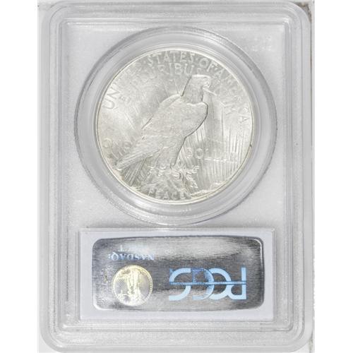 <B>1934-S<img border='0' src='http://www.heritagecoins.com/images/star.gif' width=10 height=10>$1> AU55 PCGS.</B></I> Satiny and untoned, with numerous wispy hairlines and slide marks on each side. Faint wear is noted on Liberty's upper hair curls. A pleasing Choice AU example of this key date Peace dollar.<BR><I>From The Della Collection.</B></I>