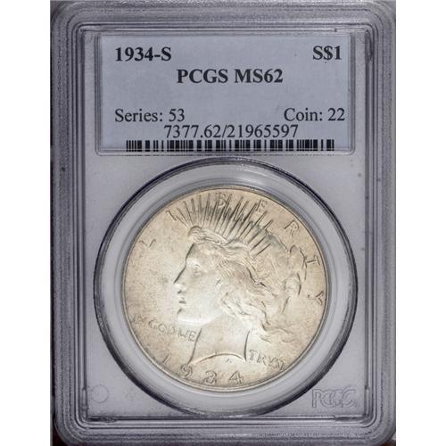 1934-S S$1 MS62 PCGS. Light golden-brown toning encroa 1934-S[img border='0' src='http://www.heritag