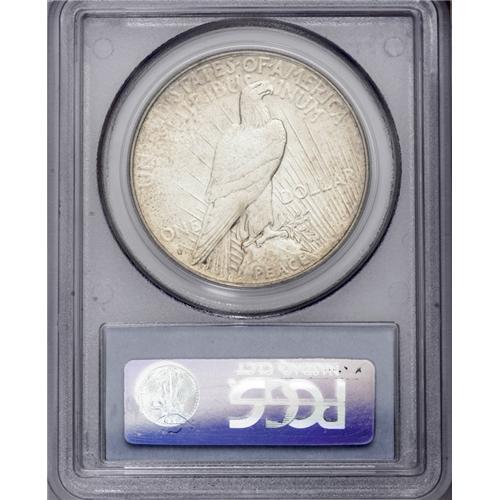 <B>1934-S<img border='0' src='http://www.heritagecoins.com/images/star.gif' width=10 height=10>$1> MS62 PCGS.</B></I> Light golden-brown toning encroaches upon the centers of this lustrous and lightly marked Silver Dollar. The strike is good if not quite sharp. The 1928 is the key date in circulated grades, and the 1928-S becomes the key in Gem condition. However, in middle Mint State grades, the 1934-S is the toughest Peace Dollar.