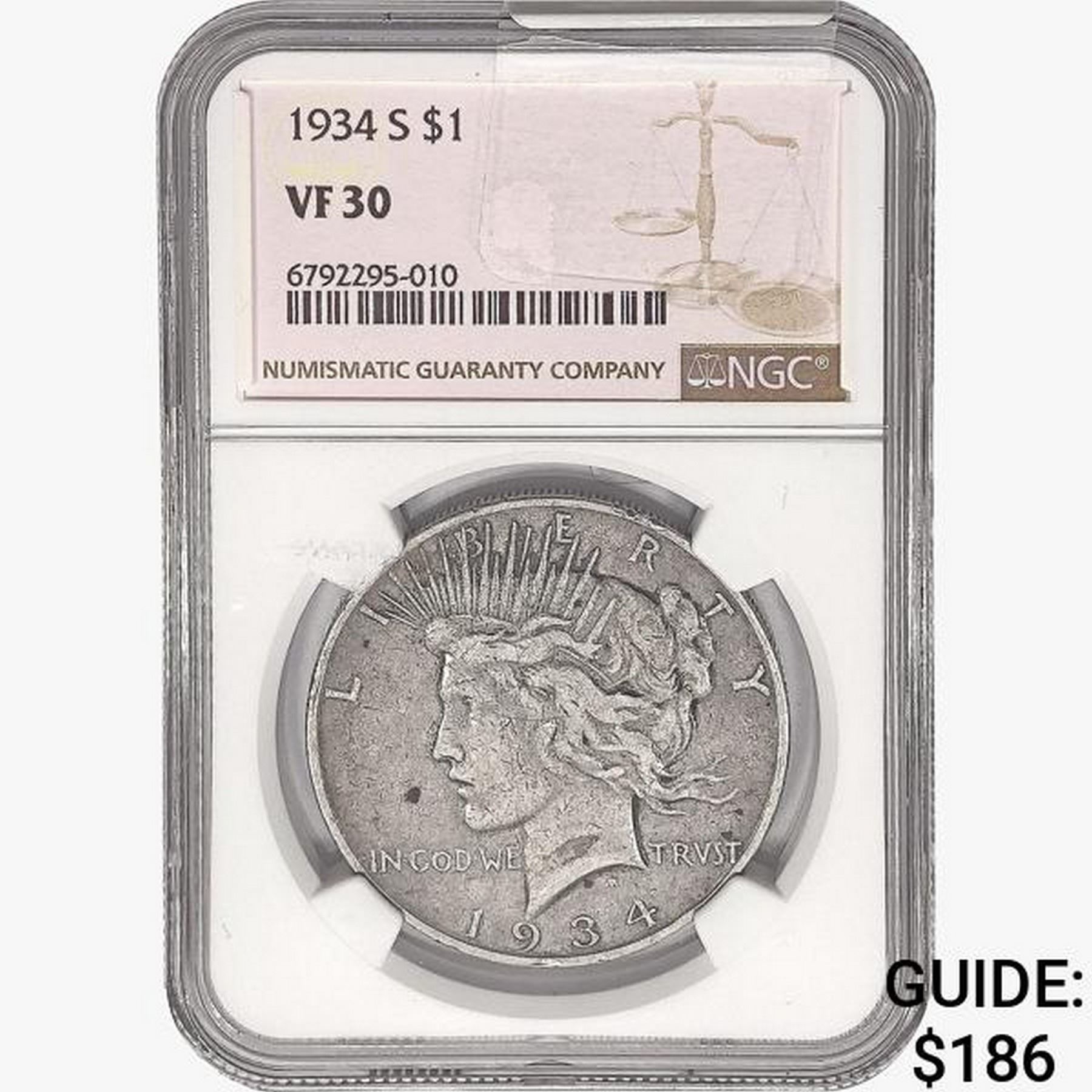 1934-S Silver Peace Dollar NGC VF30