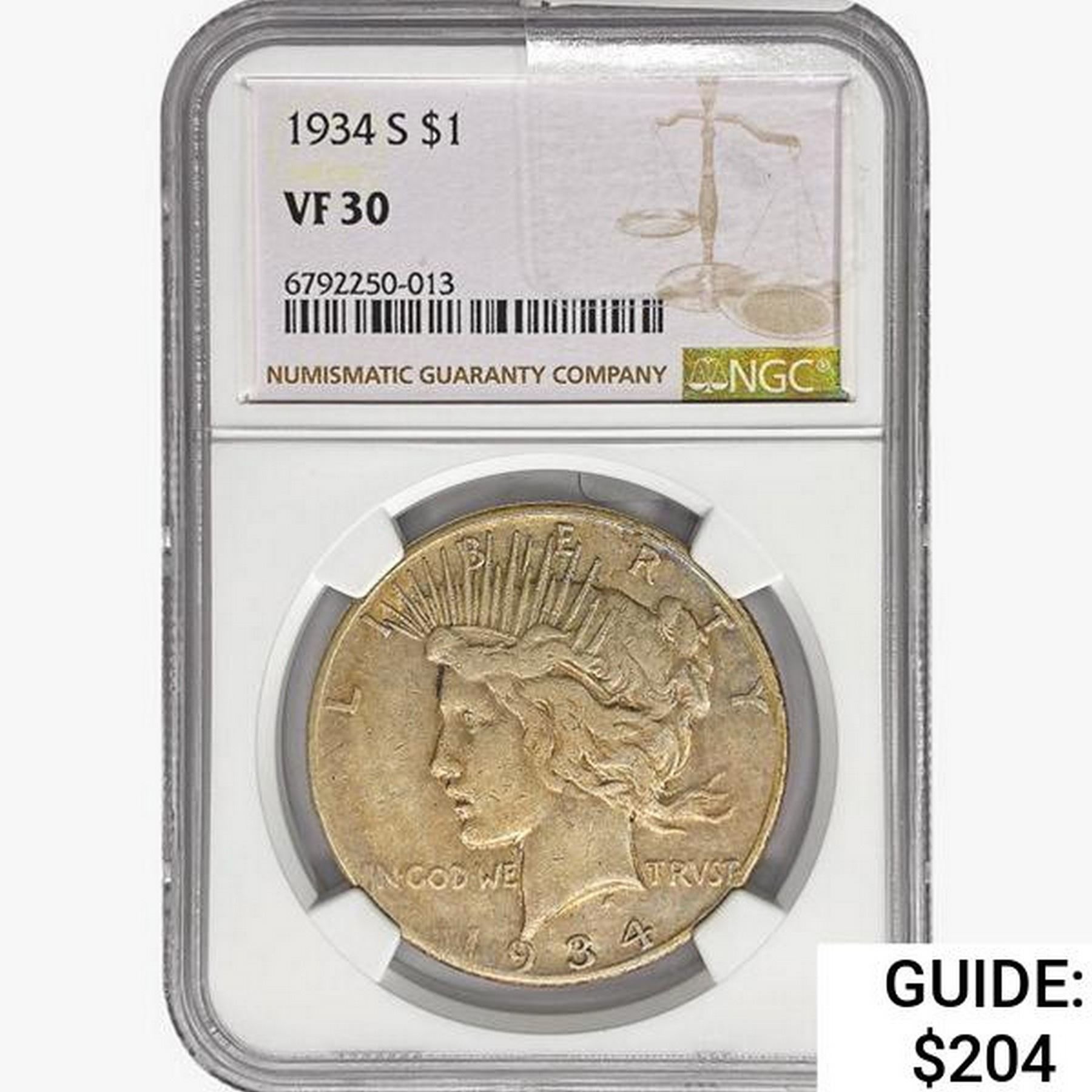 1934-S Silver Peace Dollar NGC VF30