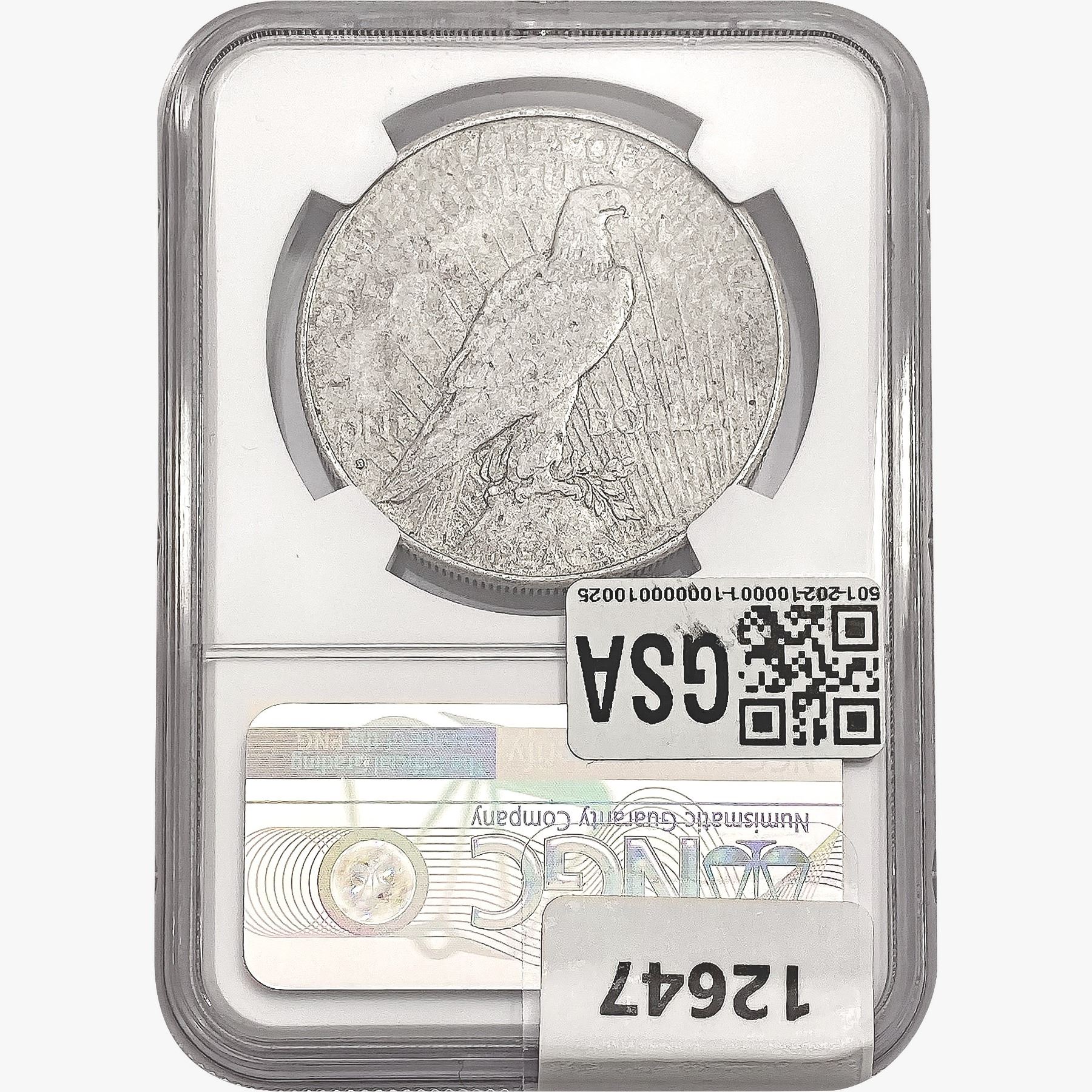 COINS AND CURRENCY LISTED IN GSA’S CATALOG AS GRADED AND ENCAPSULATED BY PCGS, NGC, ANACS, ICG, PCGS CURRENCY, PMG, PCGS BANKNOTE GRADING, CMC OR ANY OTHER THIRD-PARTY GRADING SERVICE ARE LIKEWISE SOLD “AS-IS” EXCEPT AS EXPRESSLY SET FORTH HEREIN. ALL THIRD-PARTY GRADING SERVICE GUARANTEES, INCLUDING AUTHENTICITY, ARE THE SOLE RESPONSIBILITY OF THE THIRD-PARTY GRADING SERVICE AND NOT WARRANTIES OR GUARANTEES OF GSA. BIDDERS SHOULD CONTACT THESE THIRD-PARTY GRADING SERVICES DIRECTLY WITH RESPECT TO ANY CLAIMS OR QUESTIONS THEY MAY HAVE CONCERNING THEIR GUARANTEES AND WARRANTIES. BIDDERS ACKNOWLEDGE AND AGREE THAT AUCTIONEER IS NOT BOUND BY OR LIABLE FOR ANY OPINION OR CERTIFICATION BY ANY THIRD-PARTY GRADING SERVICE. REMOVAL OF A PRODUCT FROM ITS PROTECTIVE CASING OR HOLDER OR ALTERATION OF ANY COIN HOLDER WAIVES ALL RIGHTS CONCERNING THE PRODUCT CONTAINED THEREIN.