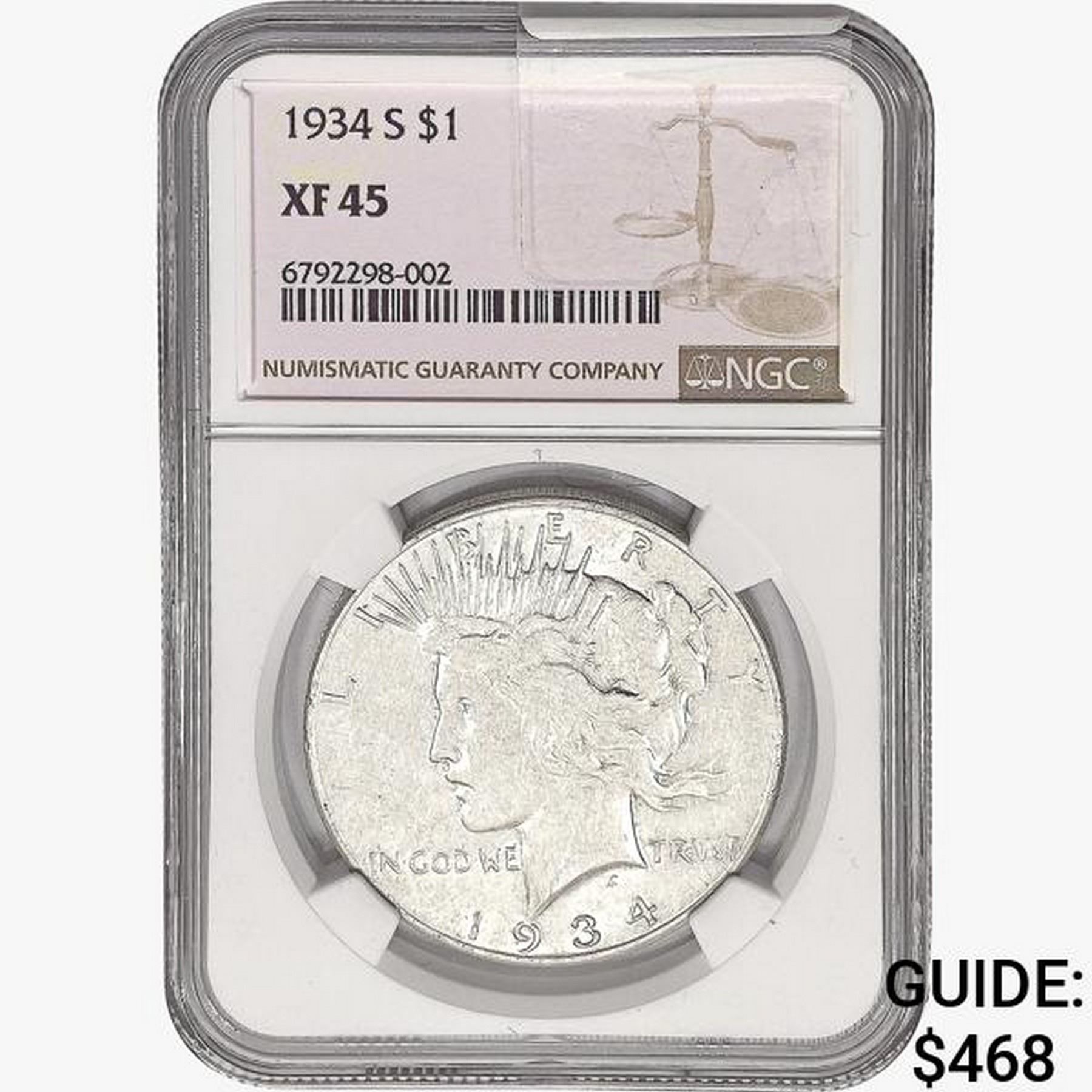 1934-S Silver Peace Dollar NGC XF45