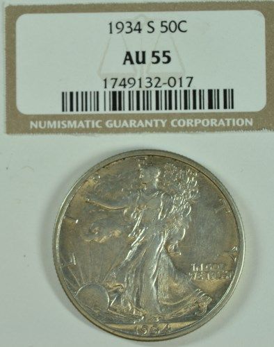 1934-S WALKING LIBERTY HALF DOLLAR, ( NGC AU-55 ) CERT.WITH COIN