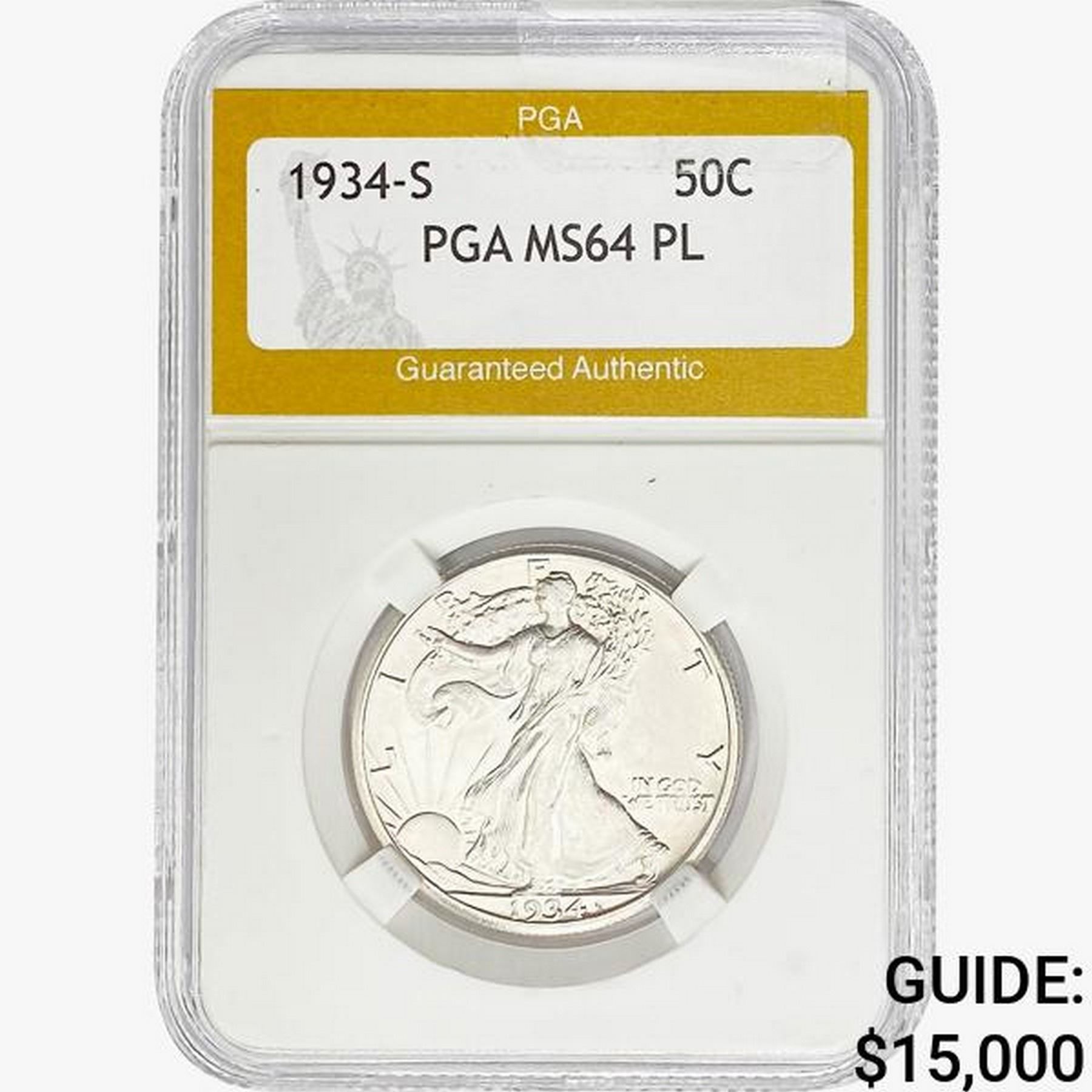 1934-S Walking Liberty Half Dollar PGA MS64 PL