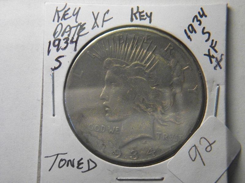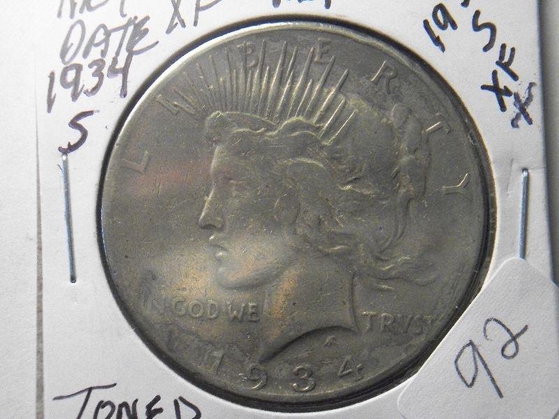 1934-S XF + PEACE DOLLAR TONED KEY DATE