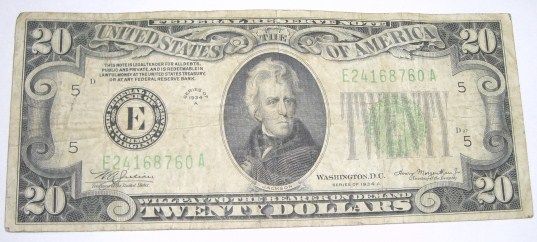 1934 SERIES A TWENTY $20 U.S. FEDERAL RESERVE NOTE *RARE HIGH GRADE* SERIAL # E24168760A!! ***Coin, Currency & All Items Listed in this auction - Grades, Conditions and Values are not Safe Deposit Coins LLC Responsibilty. Grades, Condition and Values are determined by Consigner(s) & Buyers ONLY***
