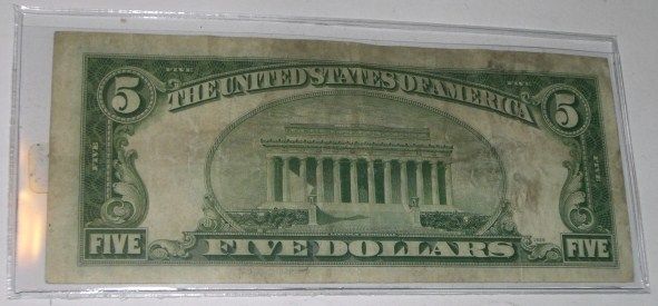 1934 SERIES D $5.00 SILVER CERTIFICATE BILL SERIAL # U73112107A *RARE EXTRA FINE GRADE EARLY NOTE*!! DOLLAR BILL CAME OUT OF SAFE!! ***Coin, Currency & All Items Listed in this auction - Grades, Conditions and Values are not Safe Deposit Coins LLC Responsibilty. Grades, Condition and Values are determined by Consigner(s) & Buyers ONLY***