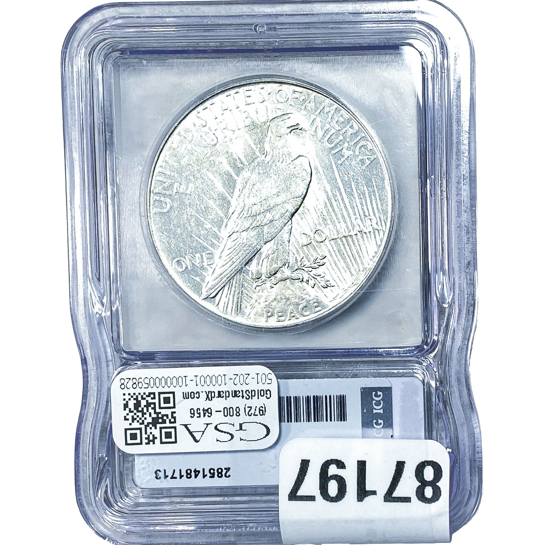 e. Coins sold referencing a third-party grading service are sold “AS IS” without any express or implied warranty, except for a guarantee by GSA that they are genuine. Removal or alteration of the holder, voids all of Bidder’s claims concerning that Product. Certain warranties may be available from the grading services and Bidders are referred to them for further details: Numismatic Guaranty Corporation (NGC), PO Box 4776, Sarasota, FL 34230, www.ngccoin.com/services/writtenguarantee.asp; Professional Coin Grading Services (PCGS), PO Box 9458, Newport Beach, CA 92658, www.pcgs.com/guarantee.html; ANACS, 6555 S. Kenton St., Ste. 303, Englewood, CO 80111; and Independent Coin Grading Co. (ICG), 7901 East Bellview, Ave., Suite 50, Englewood, CO 80111.