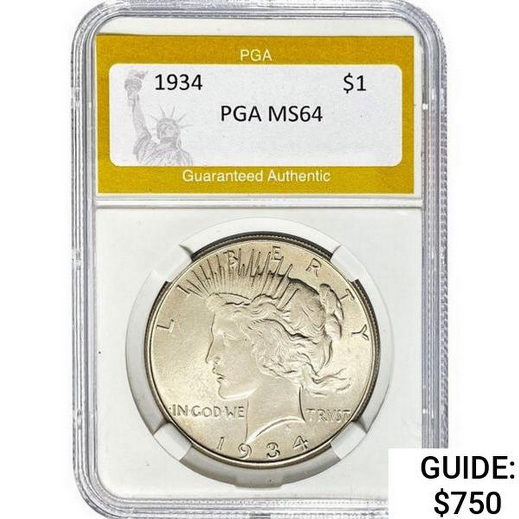 1934 Silver Peace Dollar PGA MS64
