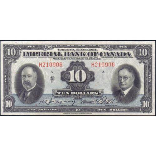 1934 Ten Dollars Imperial Bank, Jaffray, CH 375-22-08 Serial Number H210906 A, PMG Gem Uncirculated 66 Exceptional Paper Quality