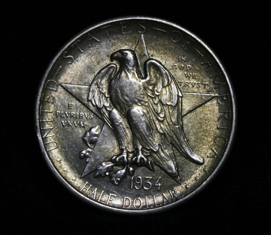 A nice Example with attractive golden toning. The 1934 issue of this coin was the first of many further issues. The coin would be struck through 1938 and at all 3 mints. The 1934 was released to the public and is generally the only one to ever show any wear. When looking at a Texas Commemorative Look for the first signs of wear on the eagle’s knee and breast and on Victory’s eyebrow and knee. Coin World's Coin Values lists ms64 at $180 and The Wholesale Greysheet lists ms64 at $125. Estimated Value $140.