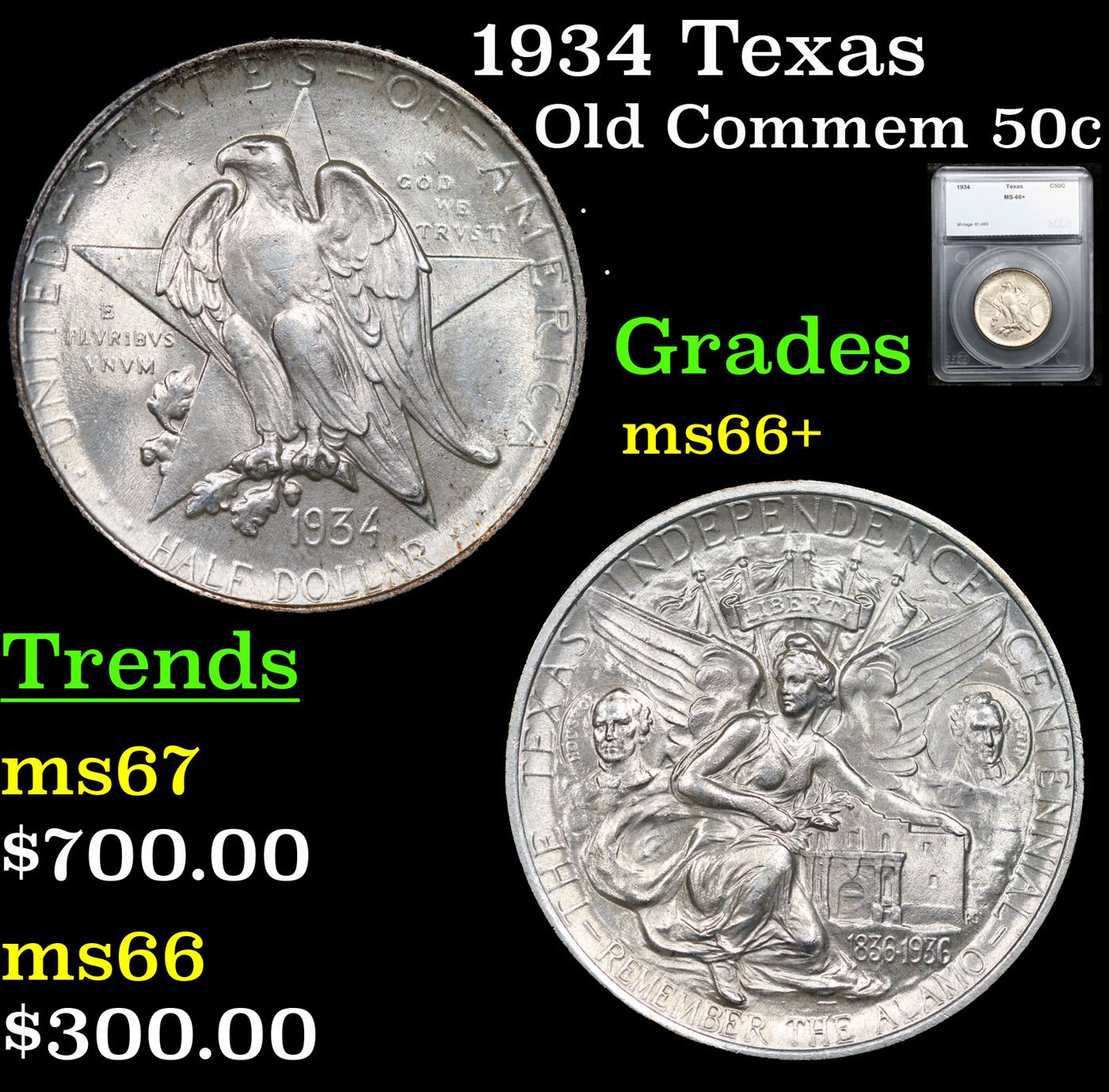 1934 Texas Old Commem Half Dollar 50c Graded ms66+ BY SEGS.