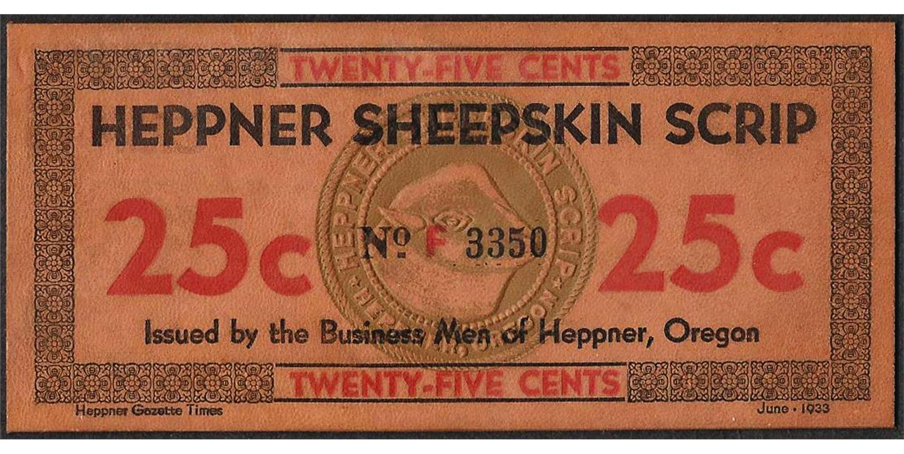1934 Twenty-Five Cents Heppner Sheepskin Oregon Obsolete Scrip