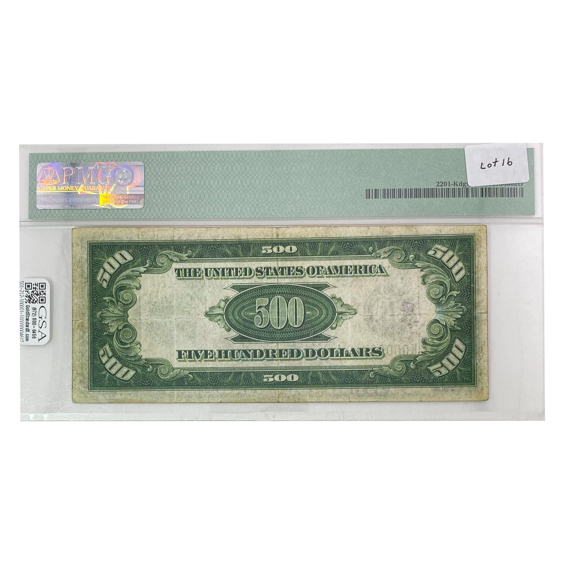 f. Notes sold referencing a third-party grading service are sold “AS IS” without any express or implied warranty, except for guarantee by GSA that they are genuine. Grading, condition or other attributes of any Product may have a material effect on its value and the opinion of others, including third-party grading services such as PCGS Currency and PMG may differ with that of GSA. GSA shall not be bound by any prior or subsequent opinion, determination, or certification by any grading service. Bidders specifically waive any claim to right of return of any Product because of the opinion, determination, or certification, or lack thereof, by any grading service. Certain warranties may be available from the grading services and Bidders are referred to them for further details: Paper Money Guaranty (PMG), PO Box 4711, Sarasota, FL 34230; PCGS Currency, PO Box 10470, Peoria, IL 61612-0470; PCGS Gold Shield, PO Box 9458, Newport Beach, CA 92658. Third-party graded notes are not returnable for any reason whatsoever.