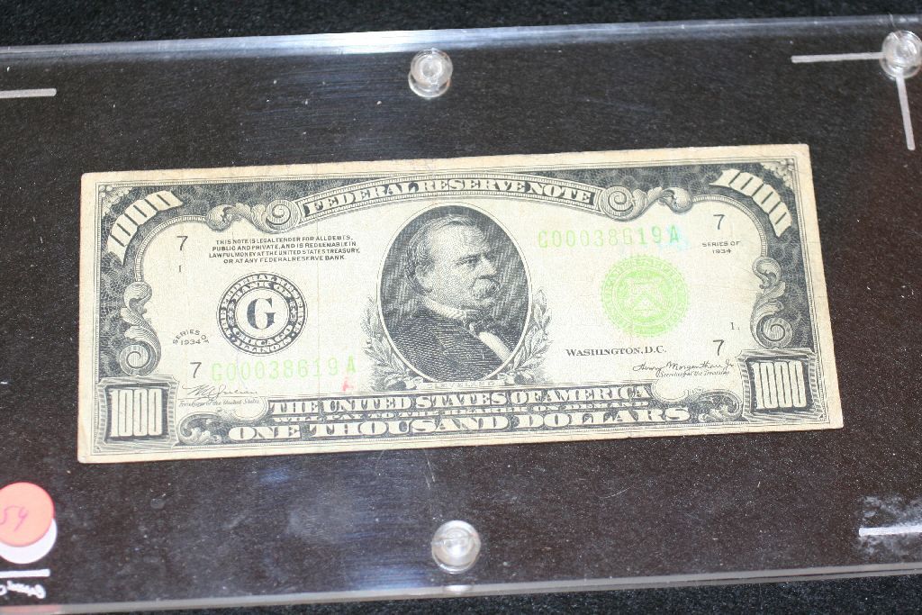 1934 US Federal Reserve Note $1000, Chicago IL Reserve