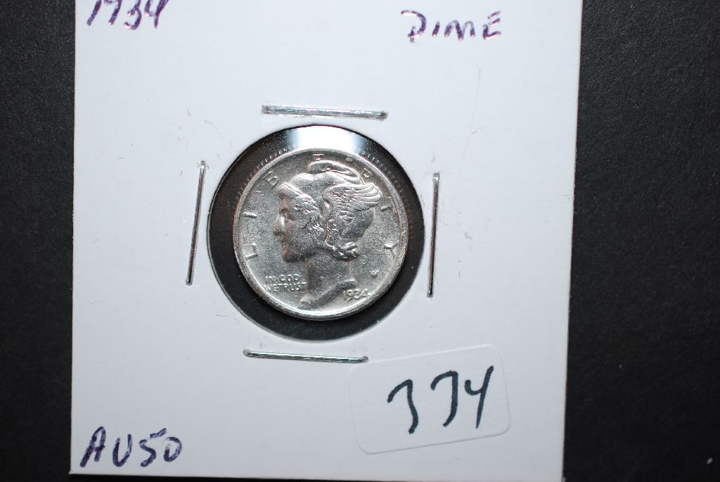 1934 US Mercury Dime; AU50; EST. $10-25