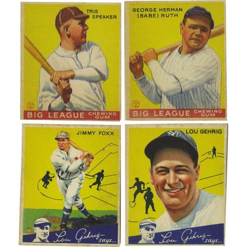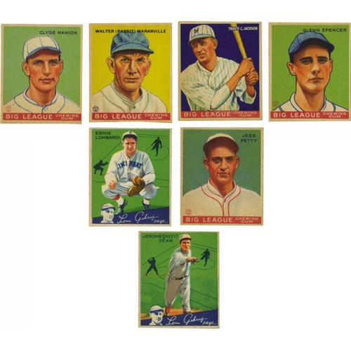<B>1934 V354 World Wide Gum/Canadian Goudey High-Grade Complete Set (96).</B></I> This fresh set presents virtually Near Mint throughout and comes to Heritage from a Canadian consignor whose family member once worked at the printing press where the set was produced. They've been kept in pristine condition for decades and the strong corners certainly show it with the set coming in at over 70% near mint condition. However, none of the cards can be graded, as it was originally hand cut from sheets and not at the factory. This set presents a great opportunity for a type set collector to add a high-grade example to their collection at a fraction of the price. <BR><BR><B>Important notice:</B> Heritage usually auctions material at the rate of 200-250 lots per hour. On some occasions eBay Live bid software or the Internet may not be able to keep up with the pace of the auction. We recommend placing a realistic absentee bid now as insurance to avoid disappointment. Occasionally the auctioneer may eliminate or reject an eBay Live bid, and the auctioneer may also reopen a lot after the close of the eBay live bidding (usually because we missed an audience bid), and may reject your bid even if it shows you as the winning bidder. By bidding via eBay Live, you agree that Heritage may award the lot to another bidder at its sole discretion under the circumstances described above or any other reasonable circumstances. Since eBay bids are not shown to us until we open the lot on the floor, we treat those bids just like floor bids. In most cases the floor responds before the eBay bid is presented to us, due to Internet lag time, so for consistency we have made it a policy that floor bids are always considered first over tie eBay live bids. Also please note that all Heritage lots purchased through eBay Live carry a 22.5% Buyer's Premium. Please make sure you read the Terms and Conditions before you bid. This lot is being auctioned in conjunction with a live floor auction by Heritage Galleries & Auctioneers. All final auction and invoice information will be supplied by Heritage Galleries & Auctioneers, and all other information should be considered preliminary. Lot:19549 <BR><BR><B>Winning Notification and Billing:</B> After the FINAL session in this auction is complete, Heritage will send e-mail and snail mail invoices. This process normally takes several days. All final auction and invoice information will be supplied by Heritage Galleries & Auctioneers, and all other information should be considered preliminary. <BR><BR>This auction will be conducted on a live auction floor and over the Internet through eBay Live. If you choose to place an absentee bid, please take a moment to <font color='#0000ff'><u><a href='http://pages.ebay.com/liveauctions/help/before/laabsentee.html'>learn how eBay Live absentee bidding works</a></u></font><font color='#000000'>