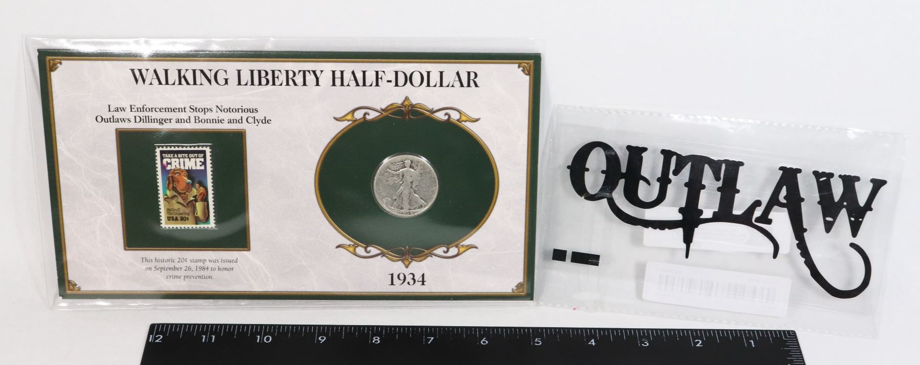 DISPLAYED ON A PANEL WITH FASCINATING INFORMATION ABOUT A MAJOR EVENT THAT TOOK PLACE IN THE COINS YEAR OF ISSUE AS WELL AS A MINT CONDITION US POSTAGE STAMP RELATING TO THE EVENT. COMES WITH LARGE BUMPER STICKER