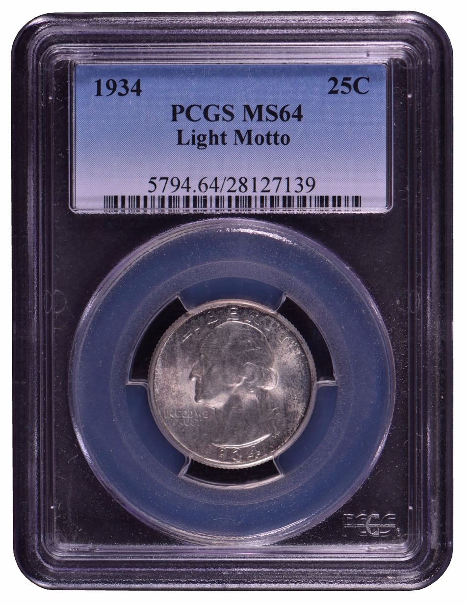 One 1934 Washington Quarter PCGS MS64 Light Motto.