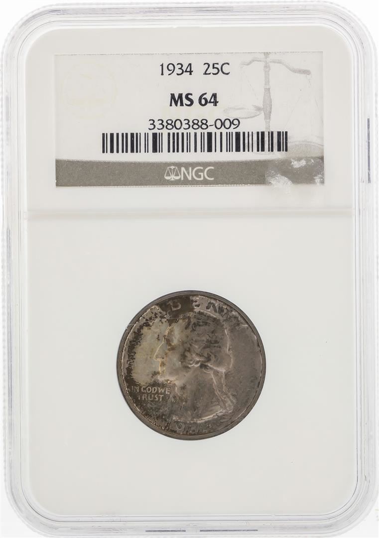 One 1934 Washington Silver Quarter Coin NGC MS64. NGC Certified.