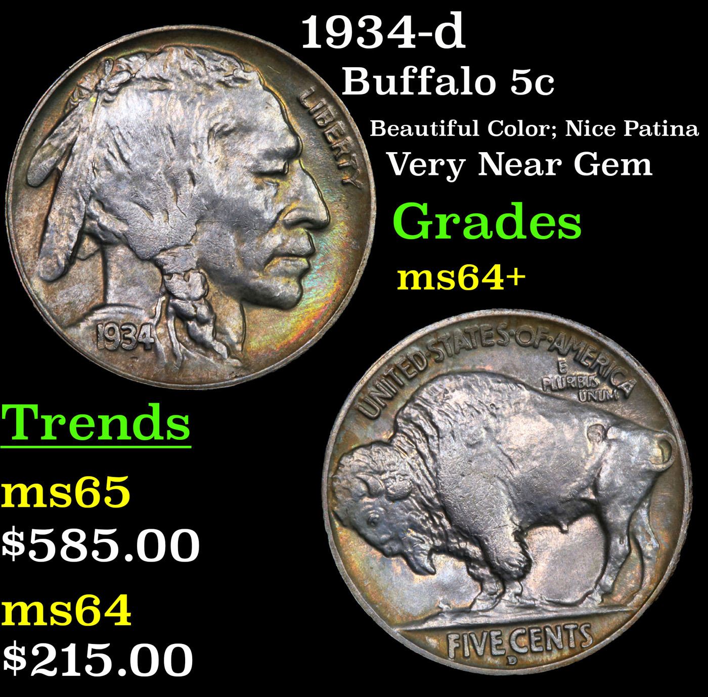 1934-d Buffalo Nickel 5c Grades Choice+ Unc.