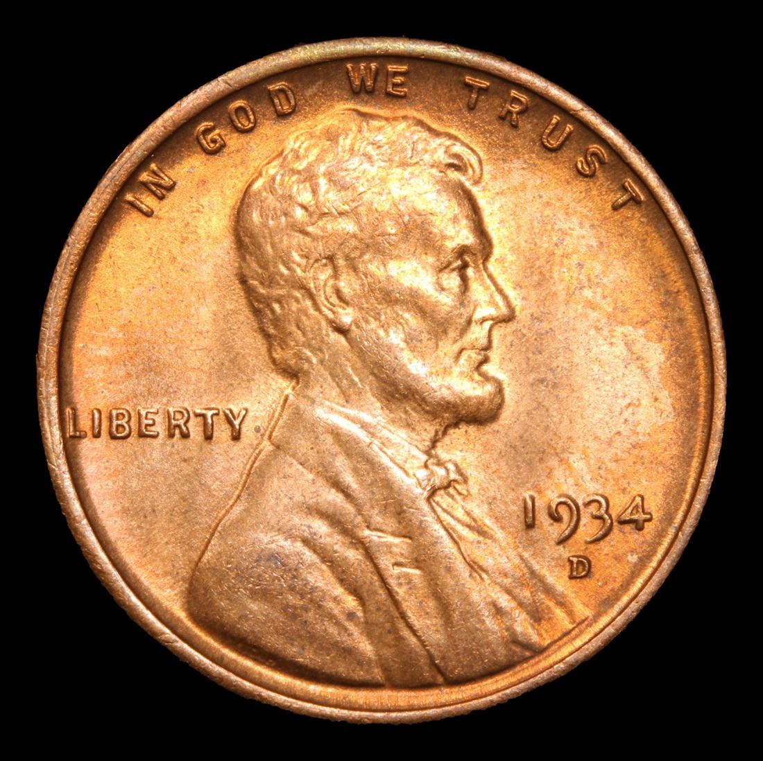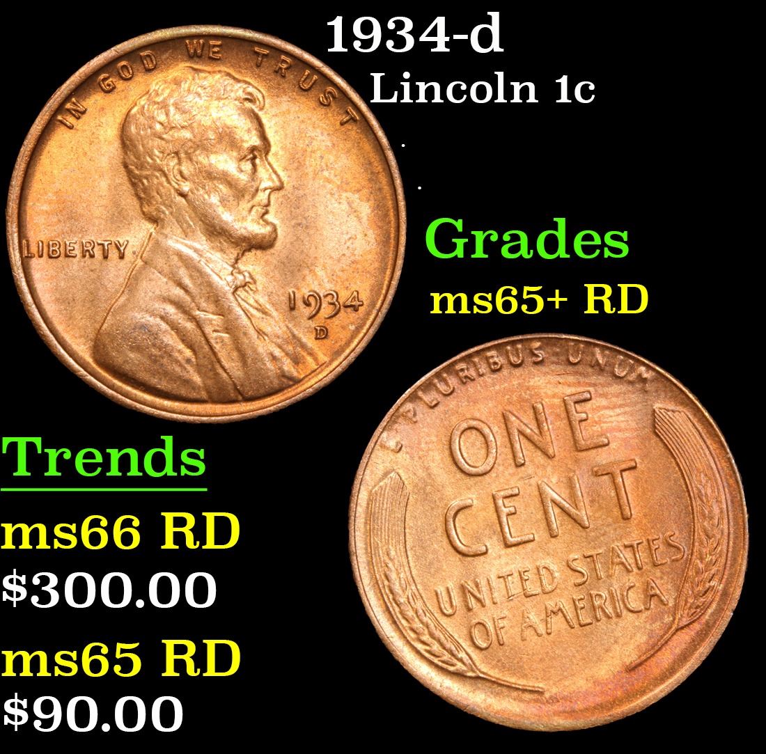 1934-d Lincoln Cent 1c Grades Gem+ Unc RD.