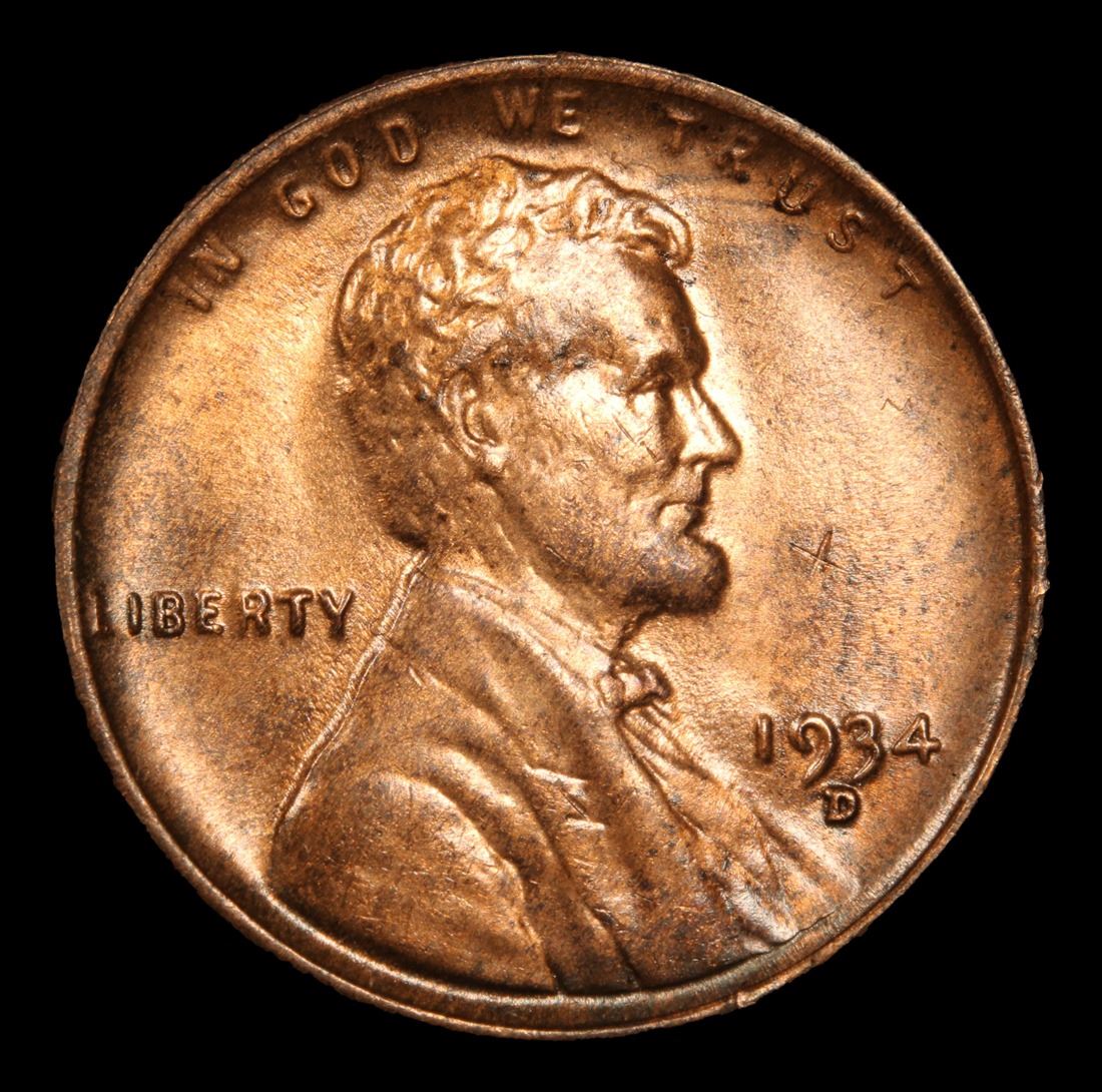 1934-d . . Lincoln Cent 1c Grades Select Unc RB.