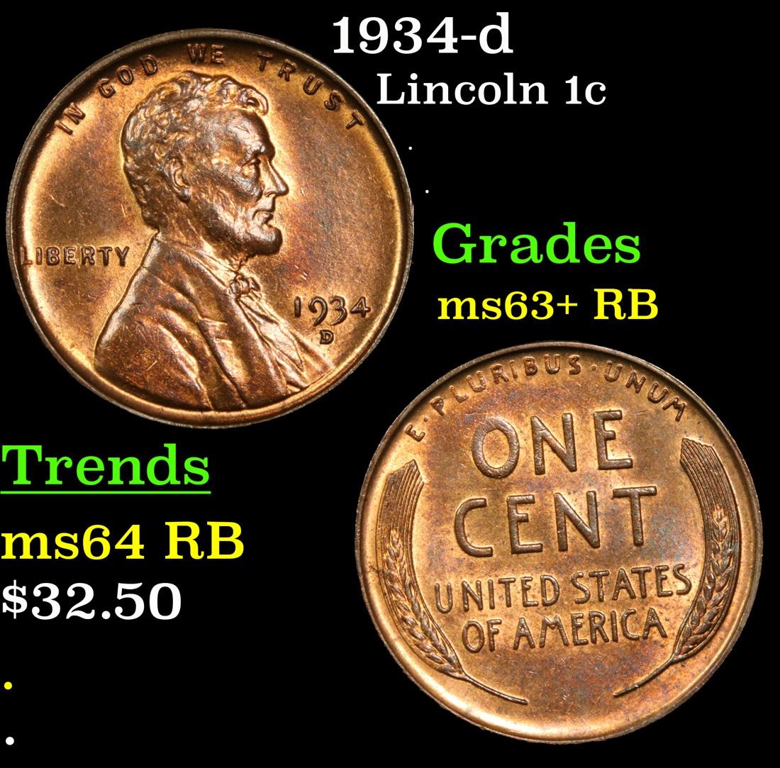 1934-d . . Lincoln Cent 1c Grades Select+ Unc RB.