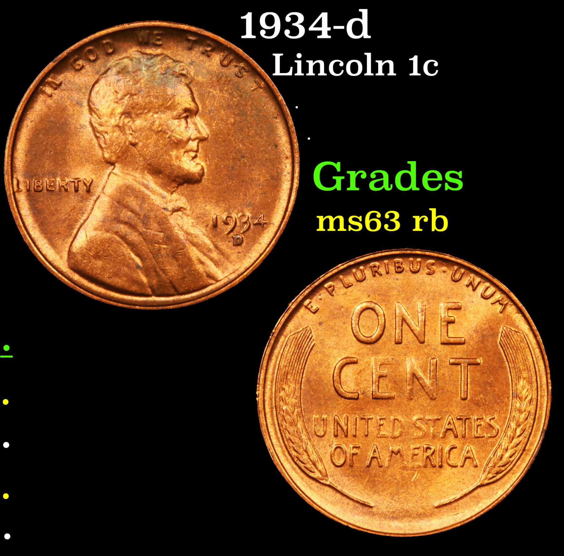 1934-d Lincoln Cent 1c Grades Select Unc RB.