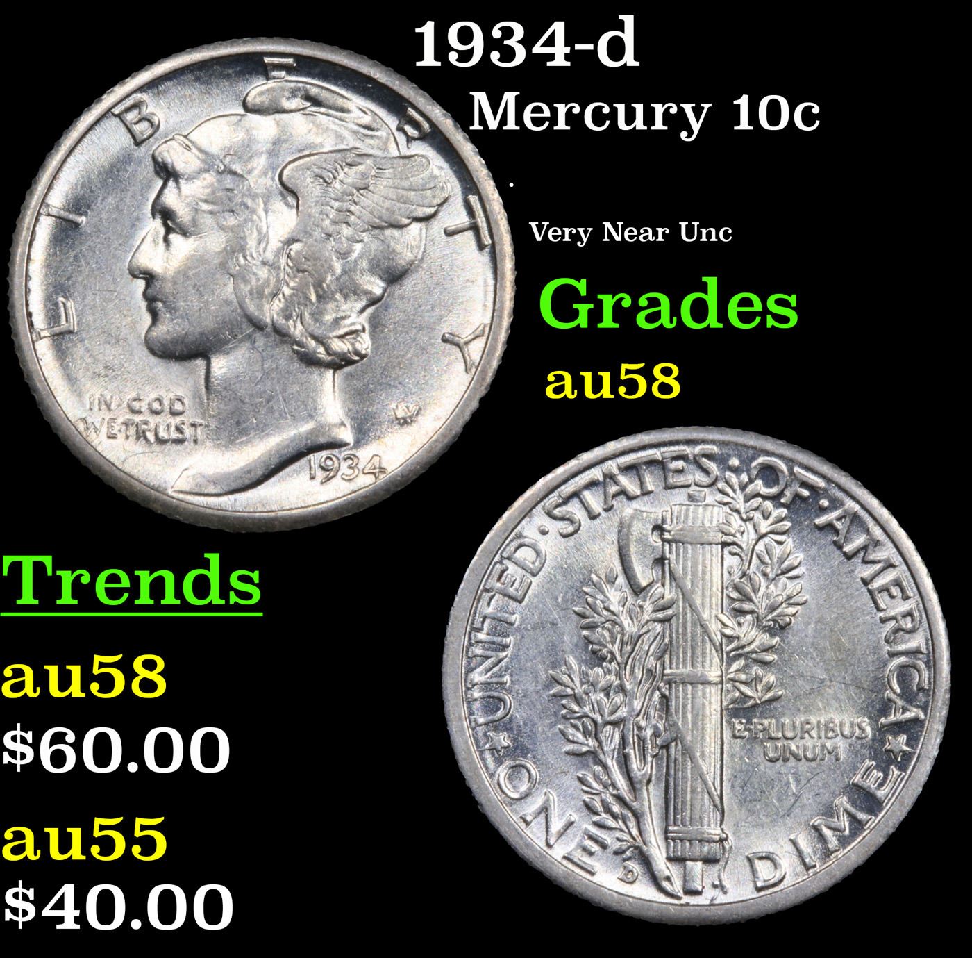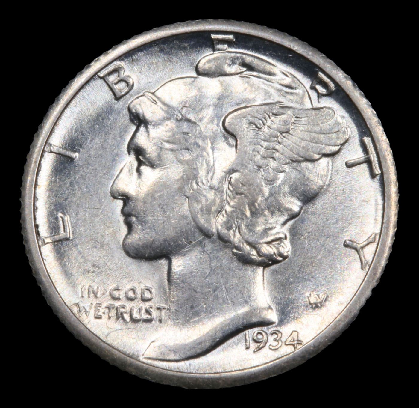 1934-d Mercury Dime 10c Grades Choice AU/BU Slider.