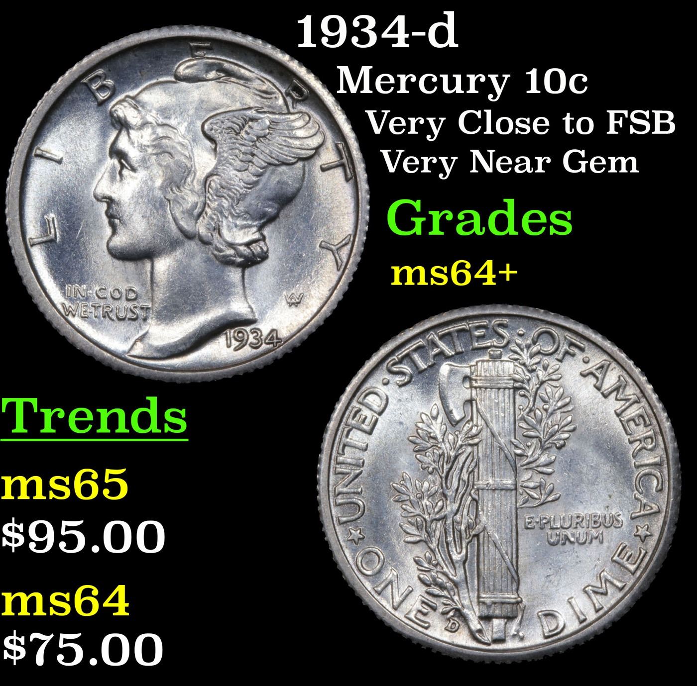 1934-d Mercury Dime 10c Grades Choice+ Unc.