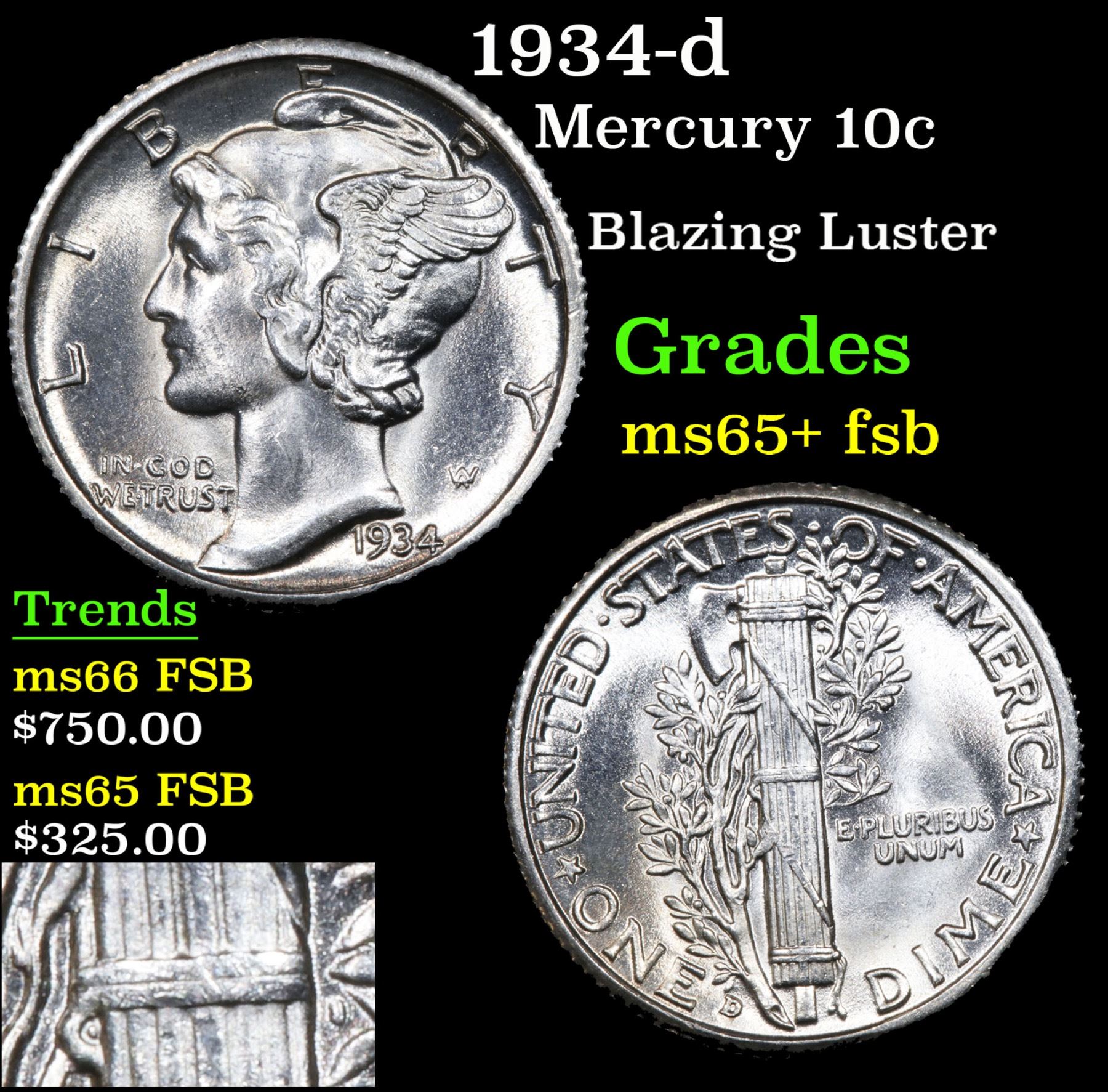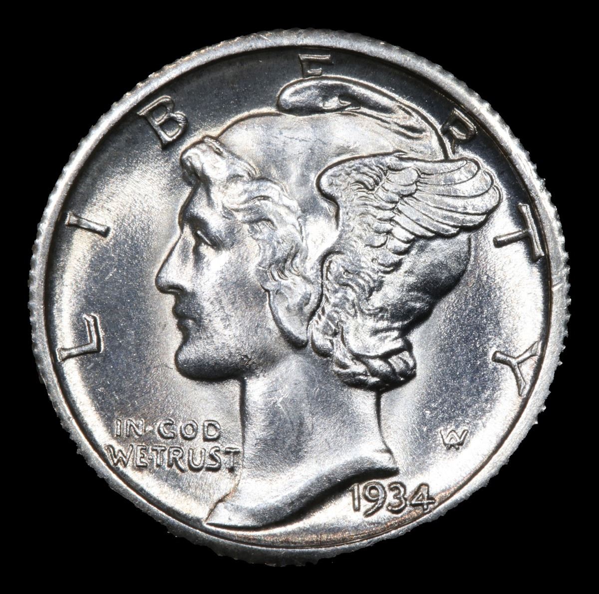 1934-d Blazing Luster . Mercury Dime 10c Grades GEM+ FSB. A Corey's Pick, Bid to Win, Don't let it get Away Coin