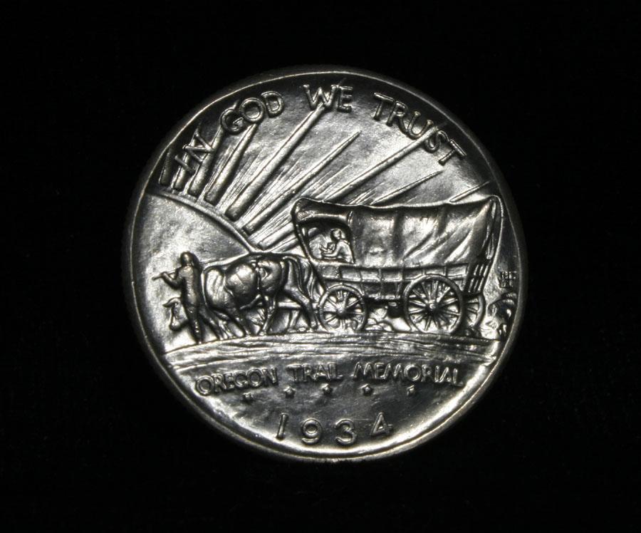 Blazing Luster, Terrific eye appeal. A fantastic striking of a Great and Beautiful coin. One of the most beautifully designed coins in American History, Designed by the same engraver that designed the Buffalo Nickel, This coin Commemorates the Oregon Trail that brought thousands of Intrepid pioneers to the West in the 1830's and 40's. When Buying an Oregon Trail Commemorative, regardless of year and mint the Points to first show wear are the Indian’s hand and thigh on the obverse and the ox and the bows of the wagon’s cover on the reverse, these are the high points. Coin World's Coin Values lists ms66 at $800 and The Wholesale Greysheet lists ms66 at $460. Estimated Value $600.