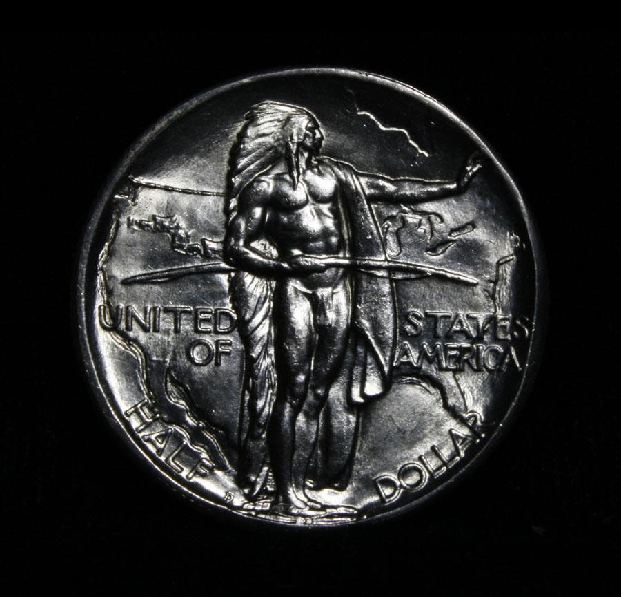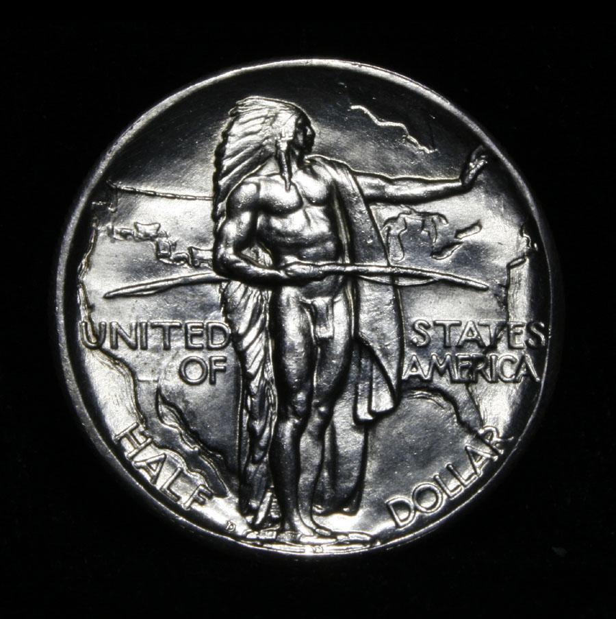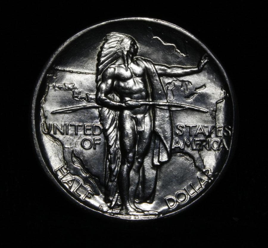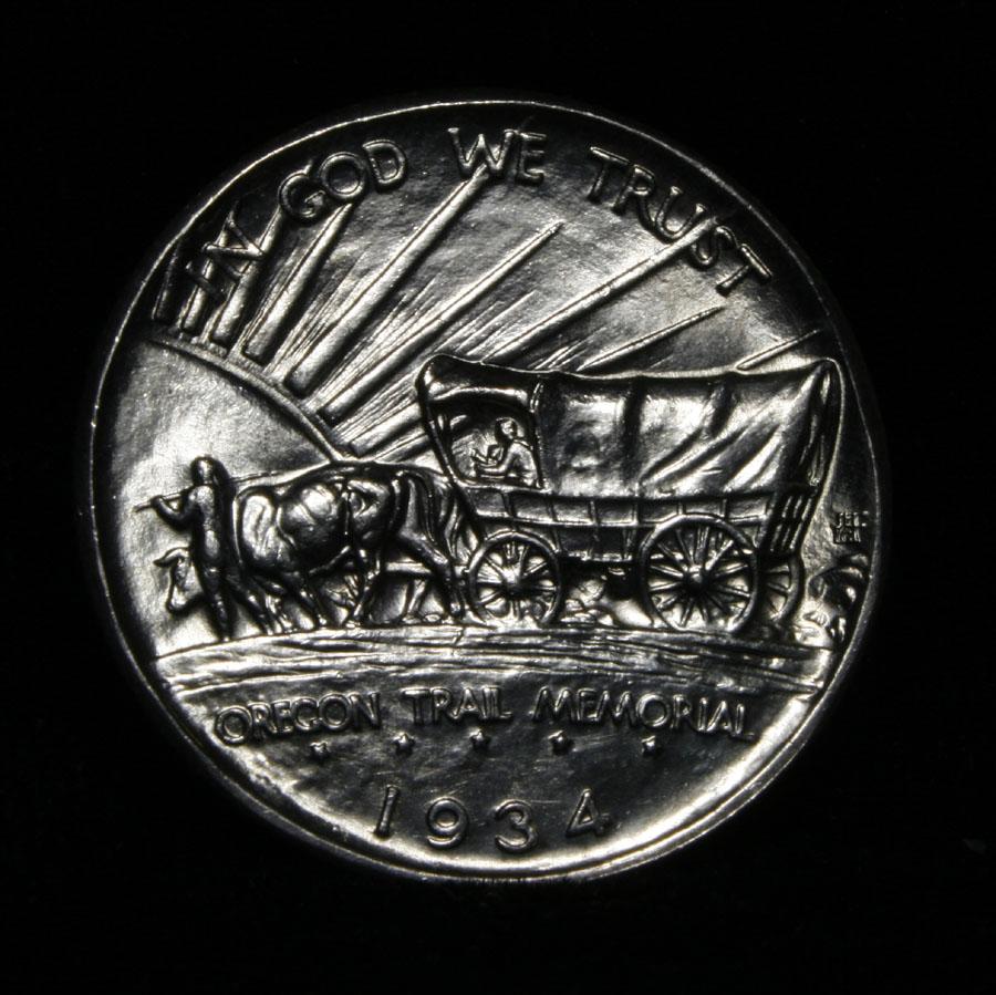 A fantastic striking of a Great and Beautiful coin. One of the most beautifully designed coins in American History, Designed by the same engraver that designed the Buffalo Nickel, This coin Commemorates the Oregon Trail that brought thousands of Intrepid pioneers to the West in the 1830's and 40's. When Buying an Oregon Trail Commemorative, regardless of year and mint the Points to first show wear are the Indian’s hand and thigh on the obverse and the ox and the bows of the wagon’s cover on the reverse, these are the high points. Coin World's Coin Values lists ms66 at $800 and The Wholesale Greysheet lists ms66 at $460. Estimated Value $600.