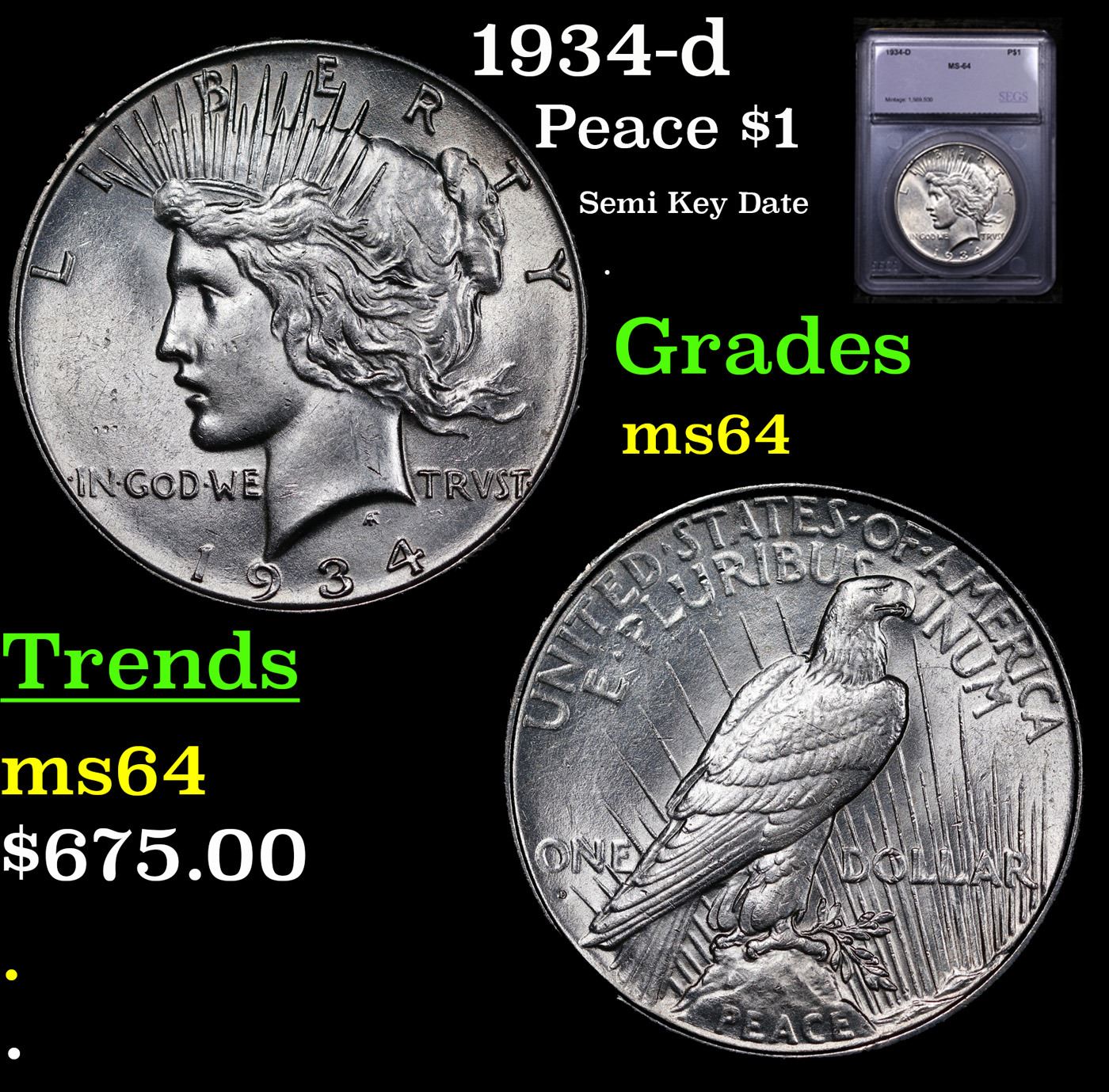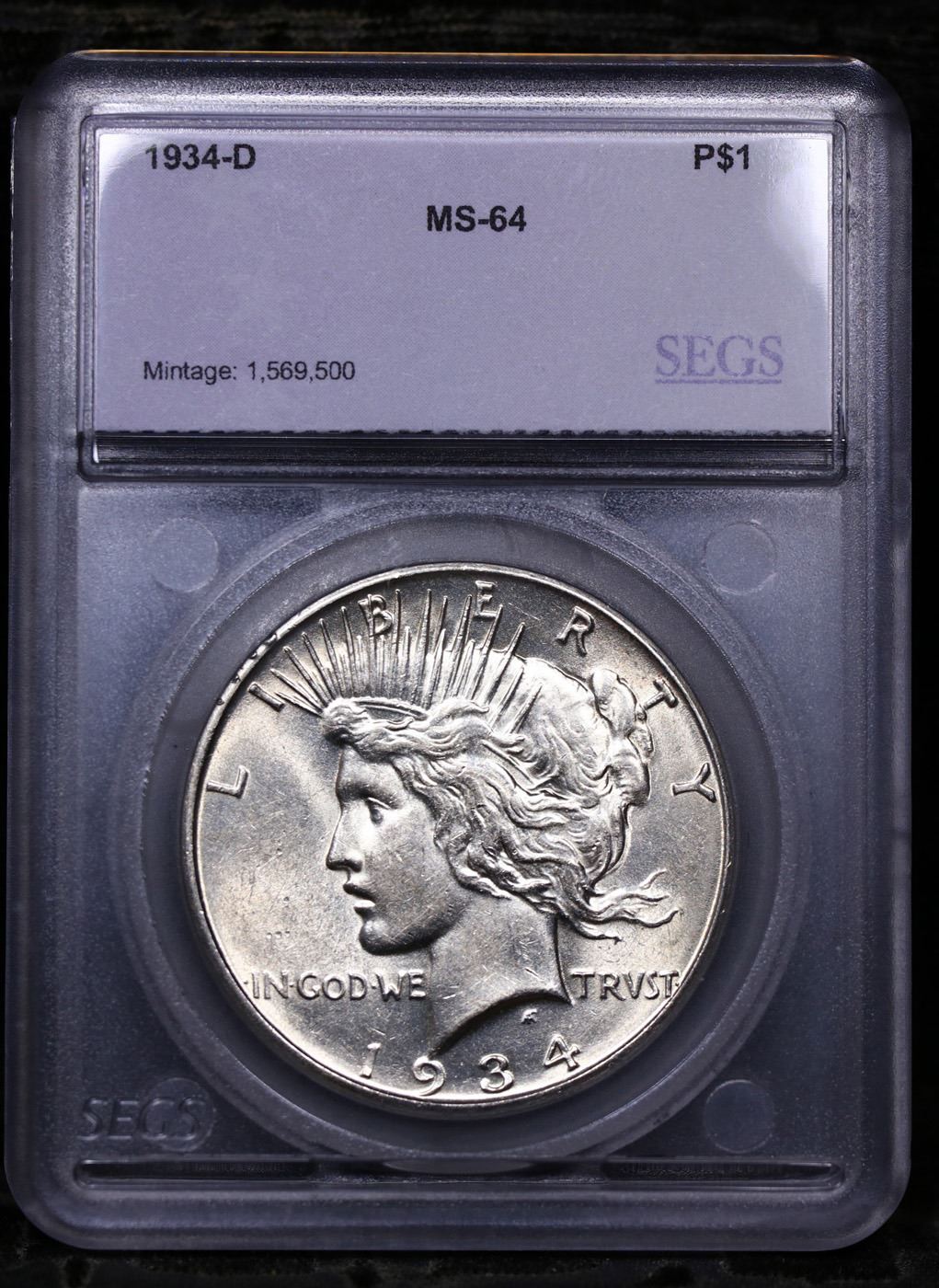 1934-d Peace Dollar $1 Graded ms64 By SEGS.
