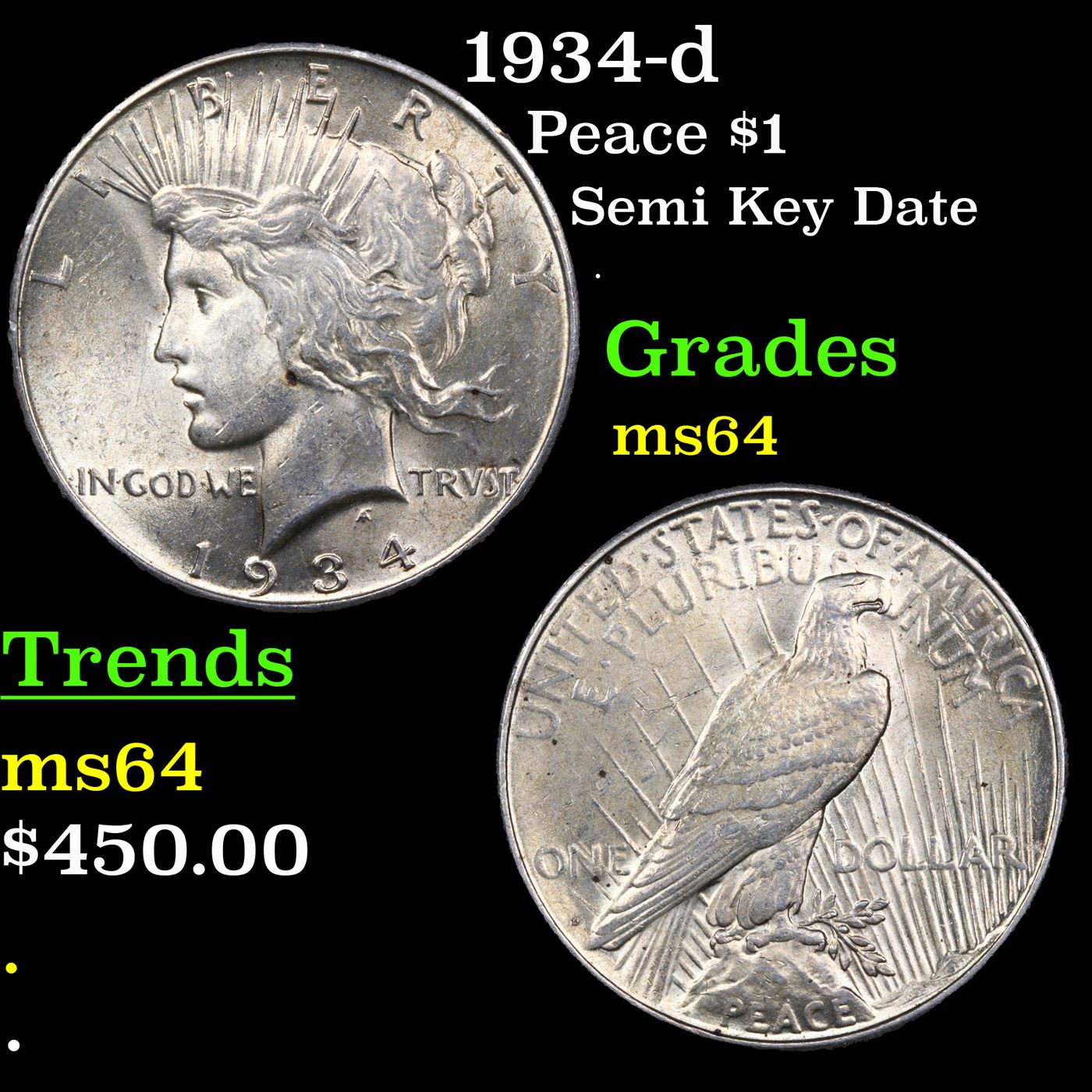 1934-d Peace Dollar $1 Grades Choice Unc.