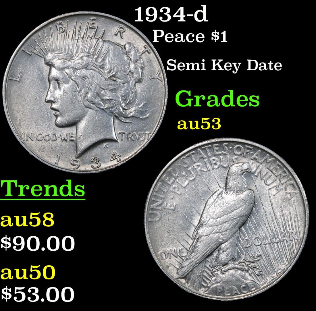 1934-d Semi Key Date . Peace Dollar $1 Grades Select AU.