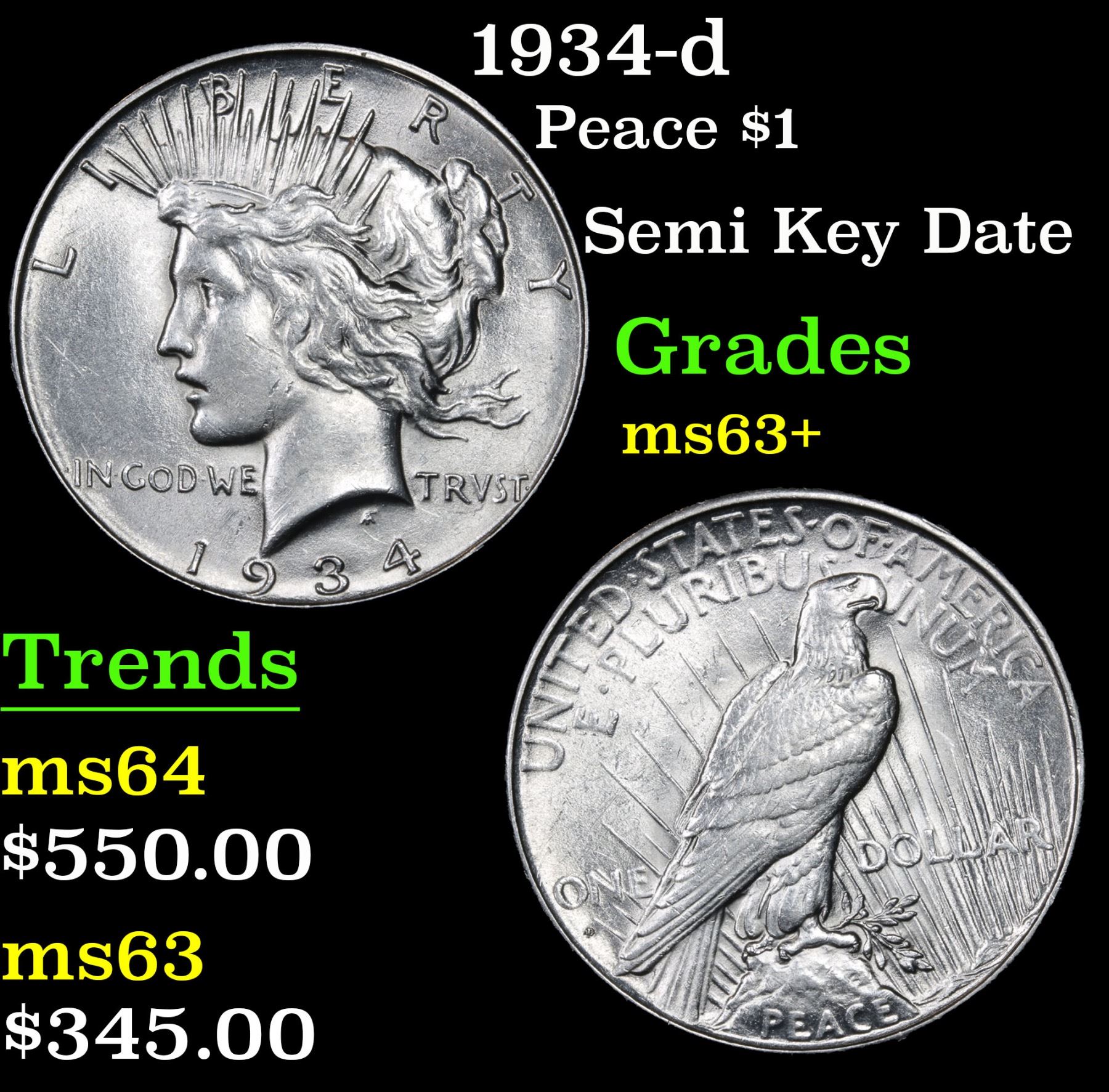 1934-d Semi Key Date . Peace Dollar $1 Grades Select+ Unc.