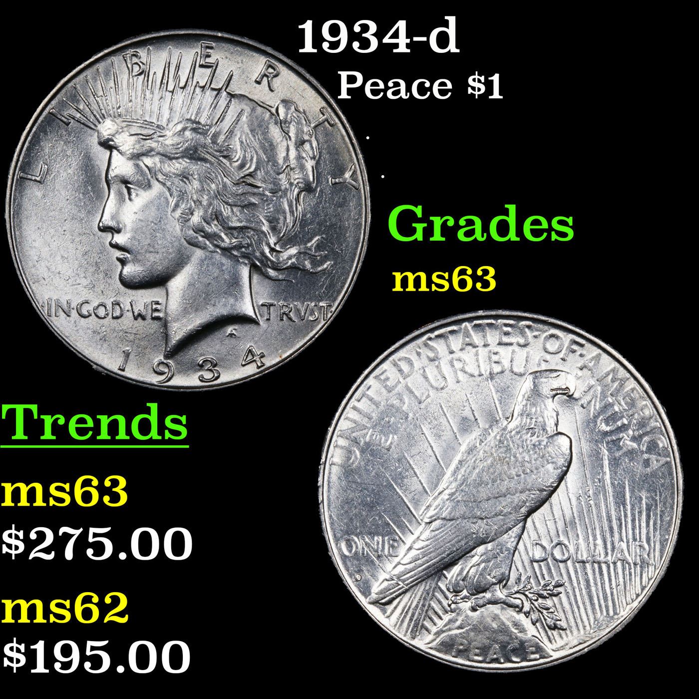 1934-d Peace Dollar $1 Grades Select Unc.