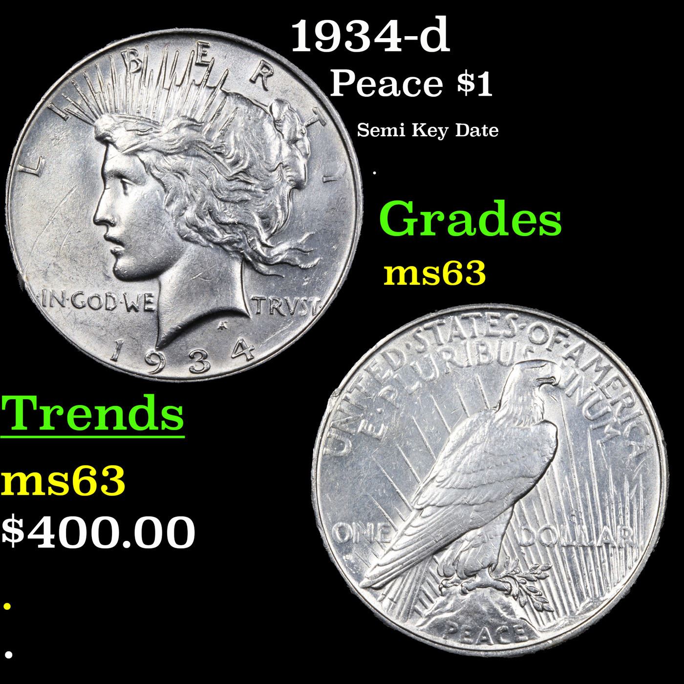 1934-d Peace Dollar $1 Grades Select Unc.