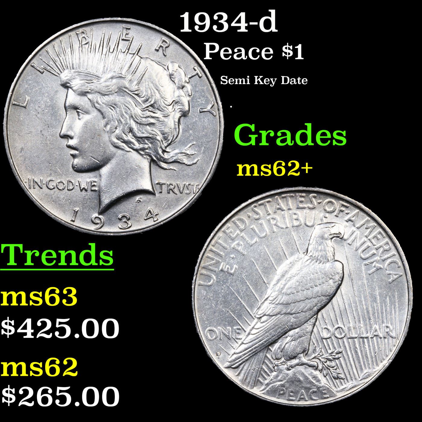 1934-d Peace Dollar $1 Grades Select Unc.