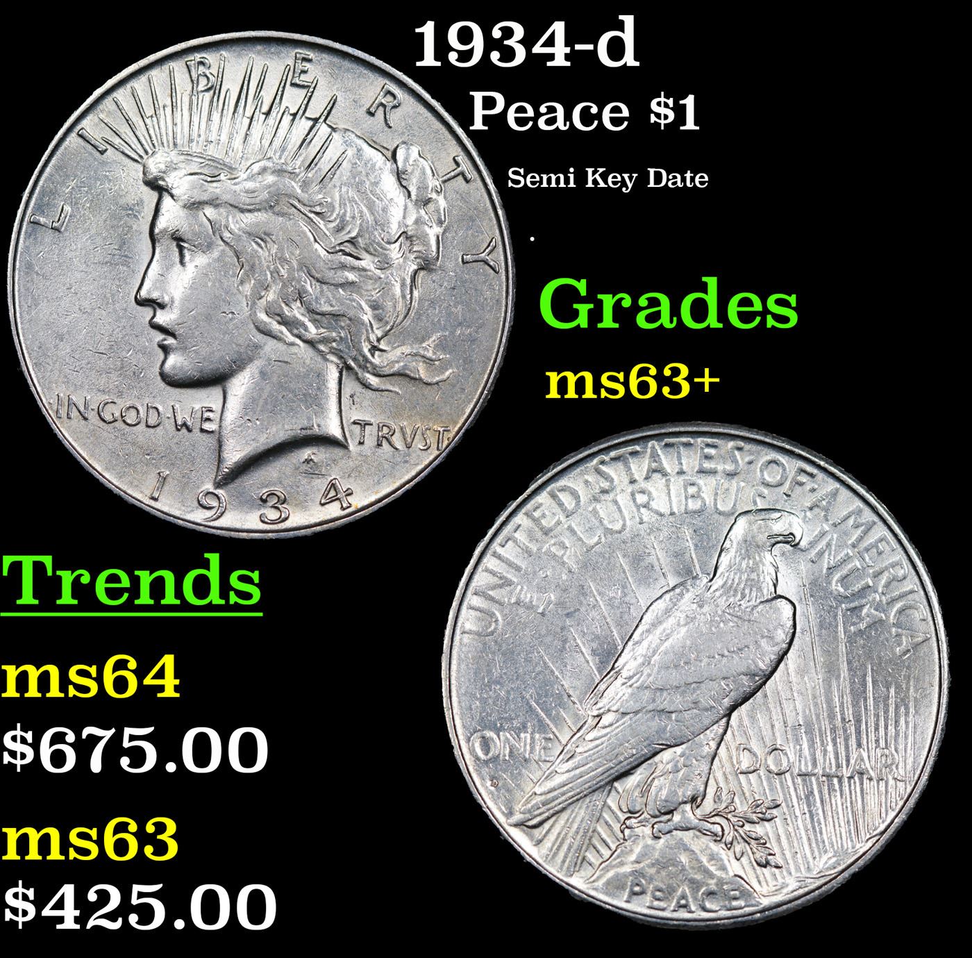 1934-d Peace Dollar $1 Grades Select+ Unc.