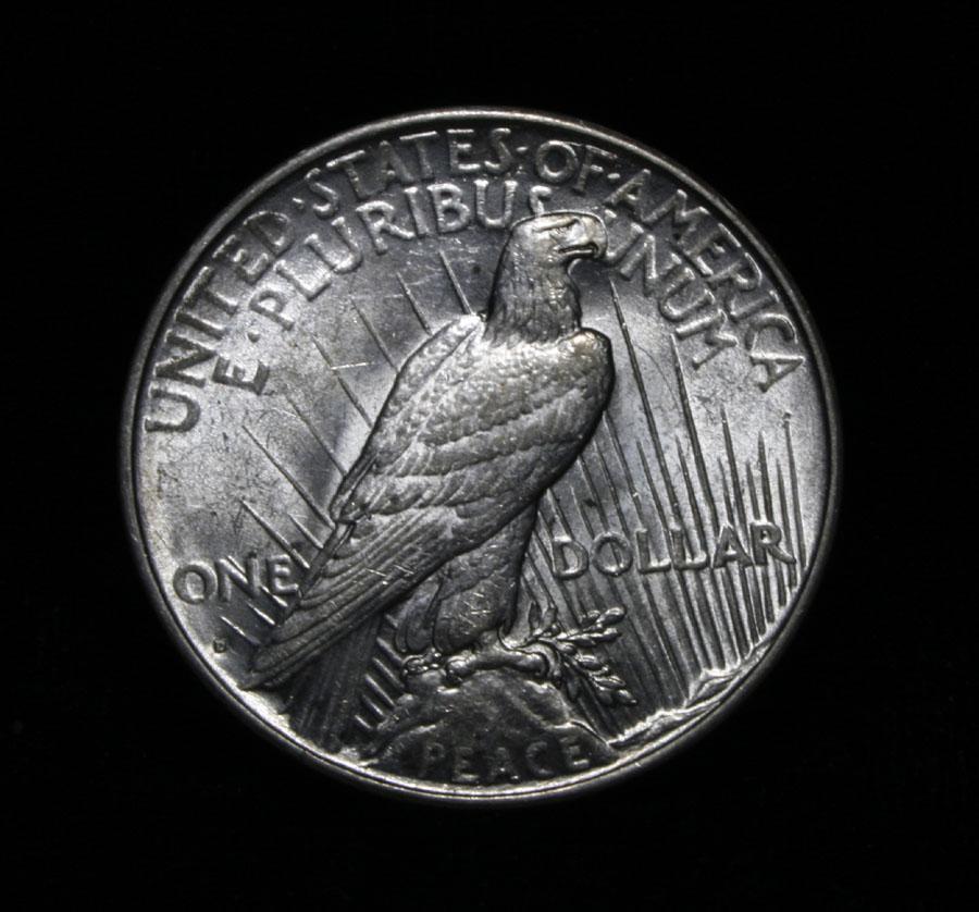 A pretty and lustrous example of this late date Peace Dollar. A solid ms63++ PQ. Coin World's Coin Values lists ms63 at $500. The Wholesale Greysheet lists ms63 at $320. Estimated Value $300