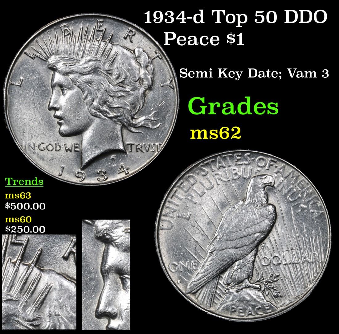 1934-d Top 50 DDO Semi Key Date; Vam 3 . Peace Dollar $1 Grades Select Unc. A Corey's Pick